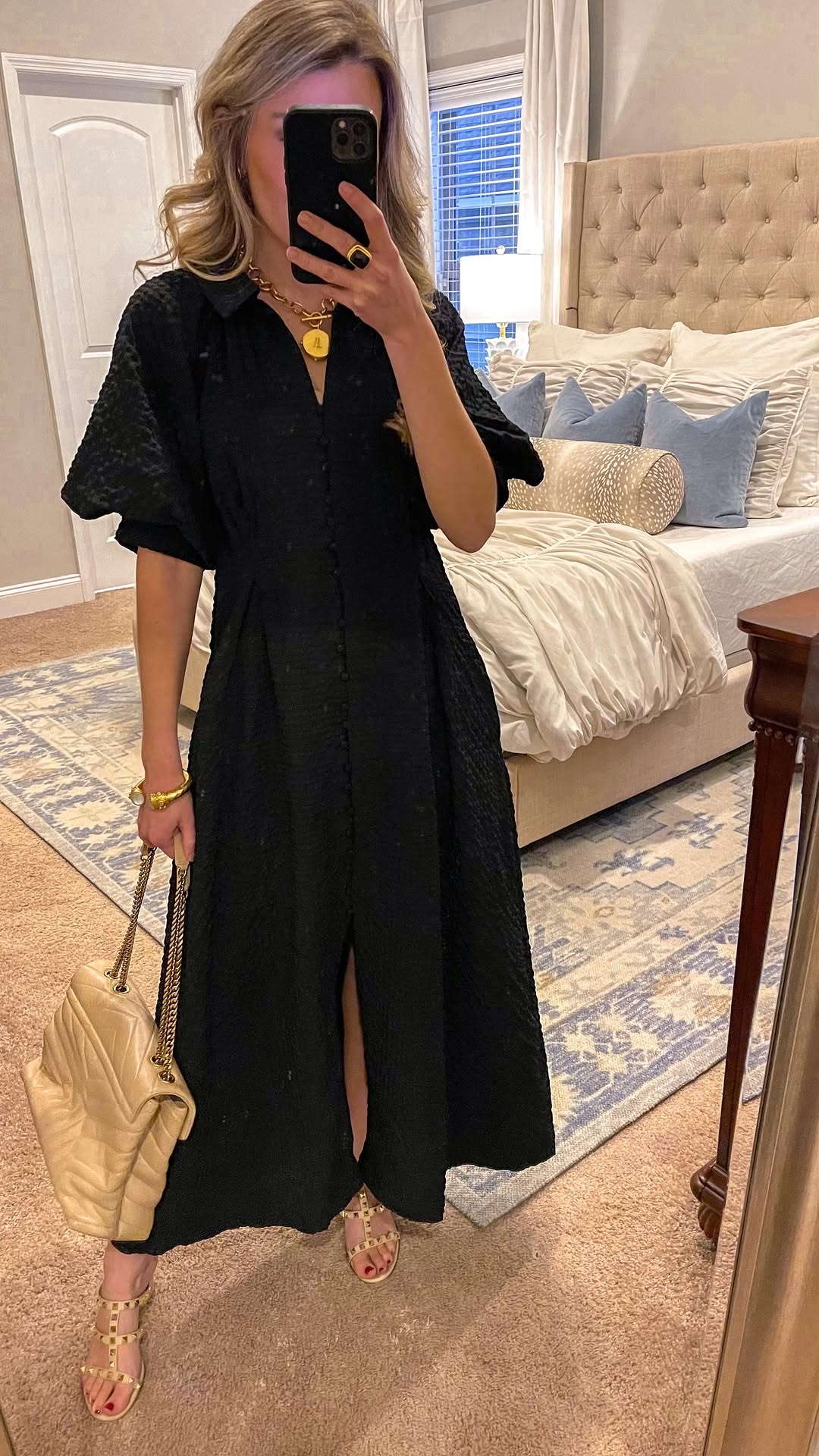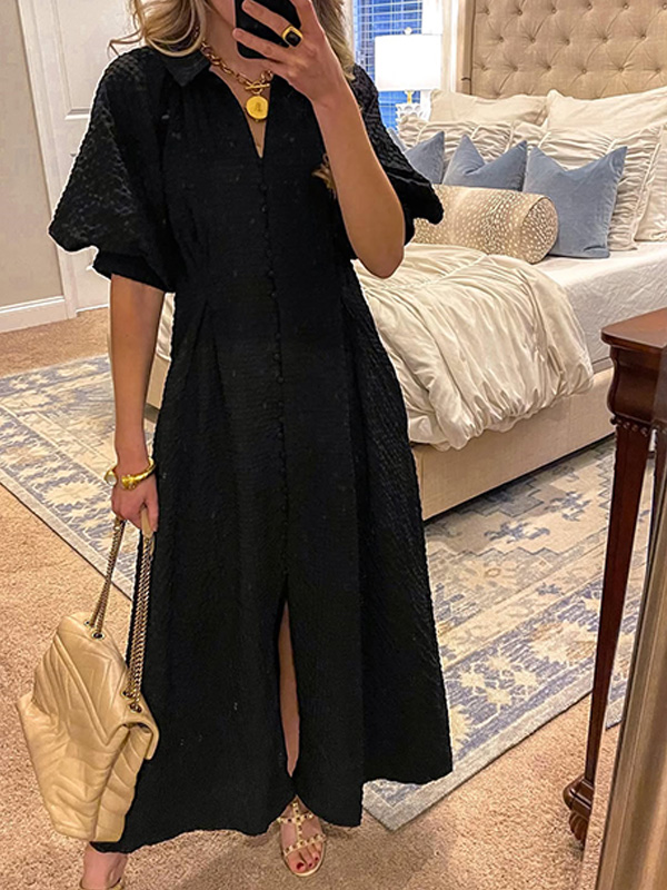 🔥Hot Sale 50% OFF🔥V-neck Solid Color Lantern Sleeve Dress