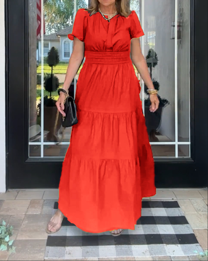 Women's Casual Dresses 2025 Summer Spring V Neck Short Sleeve Sundress Smocked Waist A Line Tiered Mini Dress