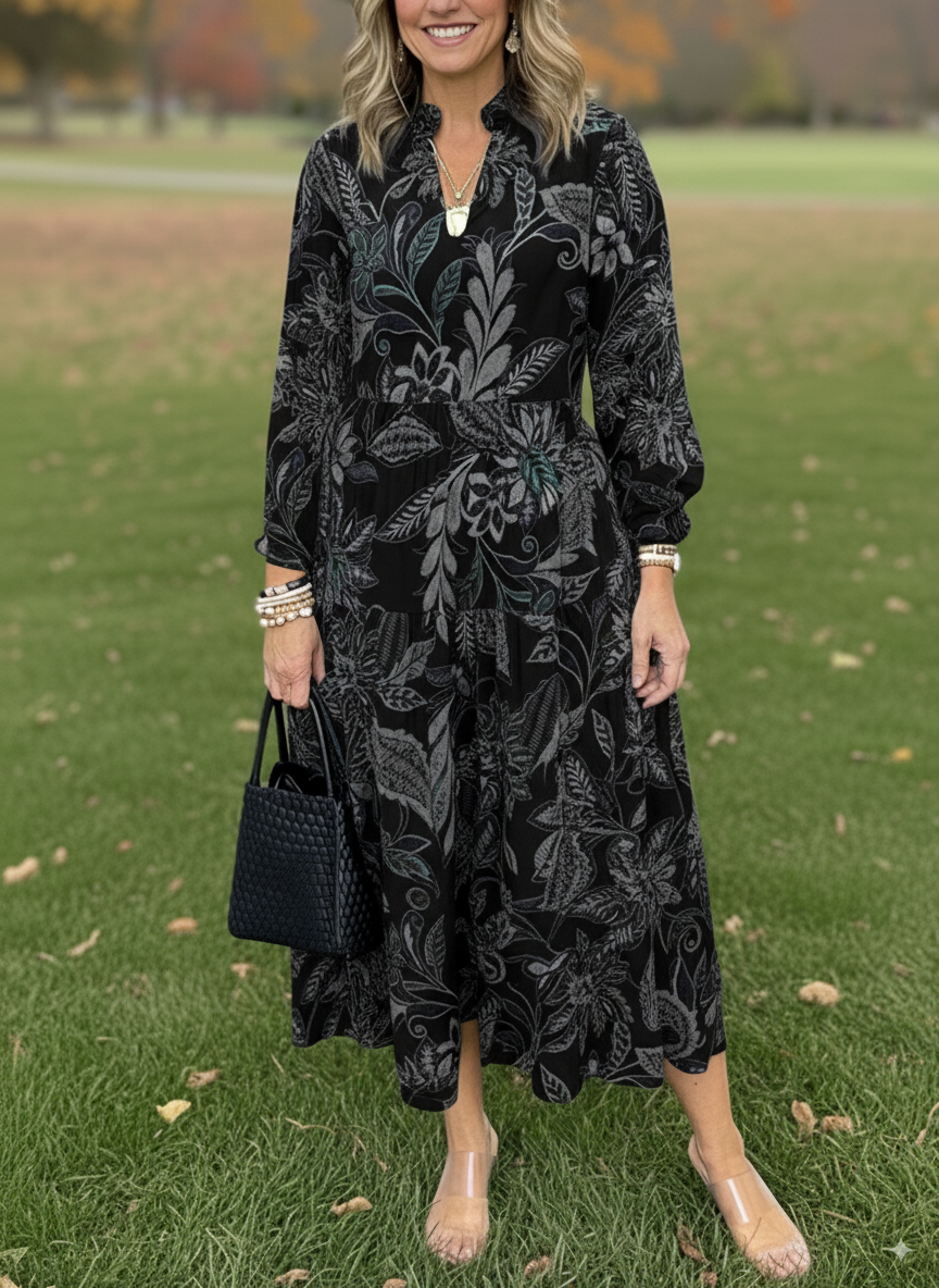 CLEARANCE🔥 Striped Split V Neck Collared Shirt Dress