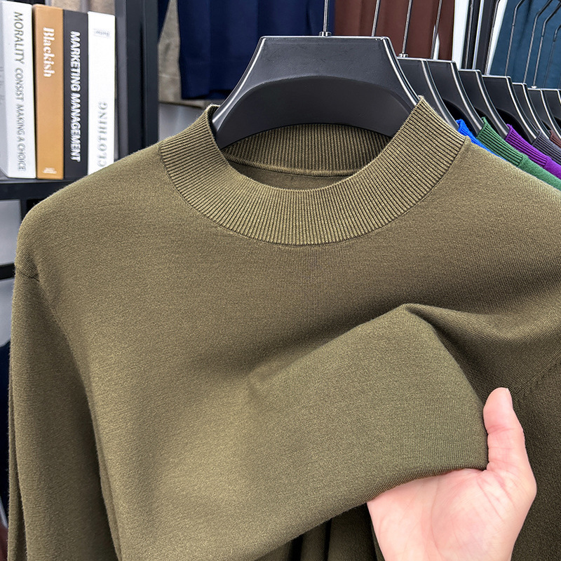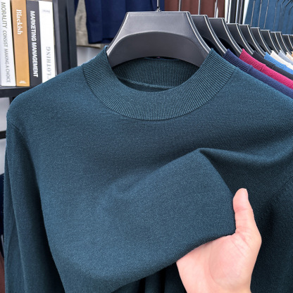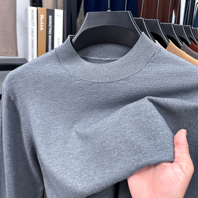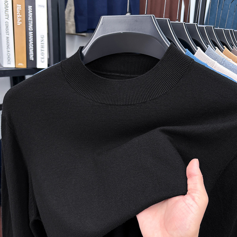 2025 Autumn and Winter Men's Stand Collar Cashmere Casual T-shirt
