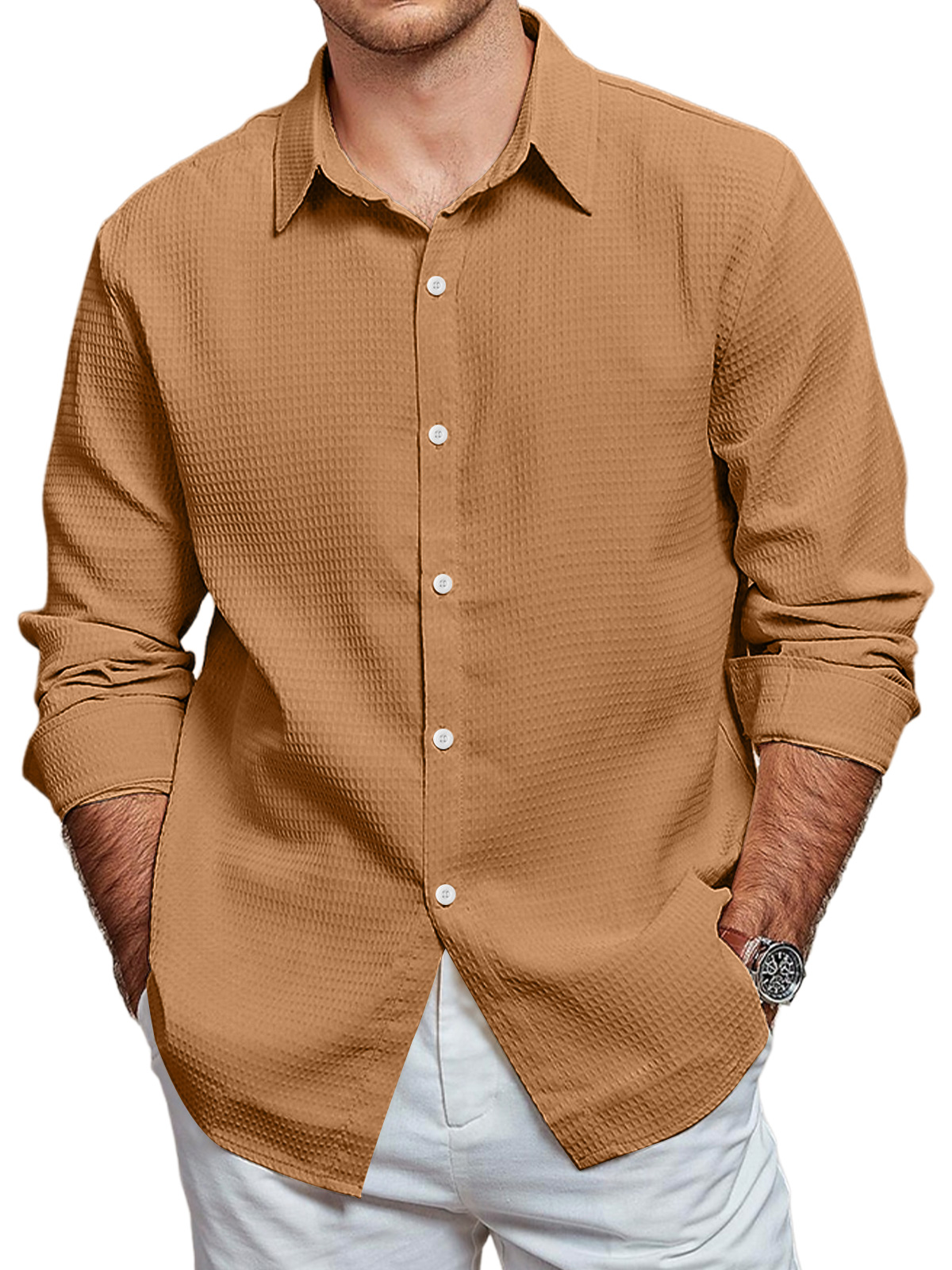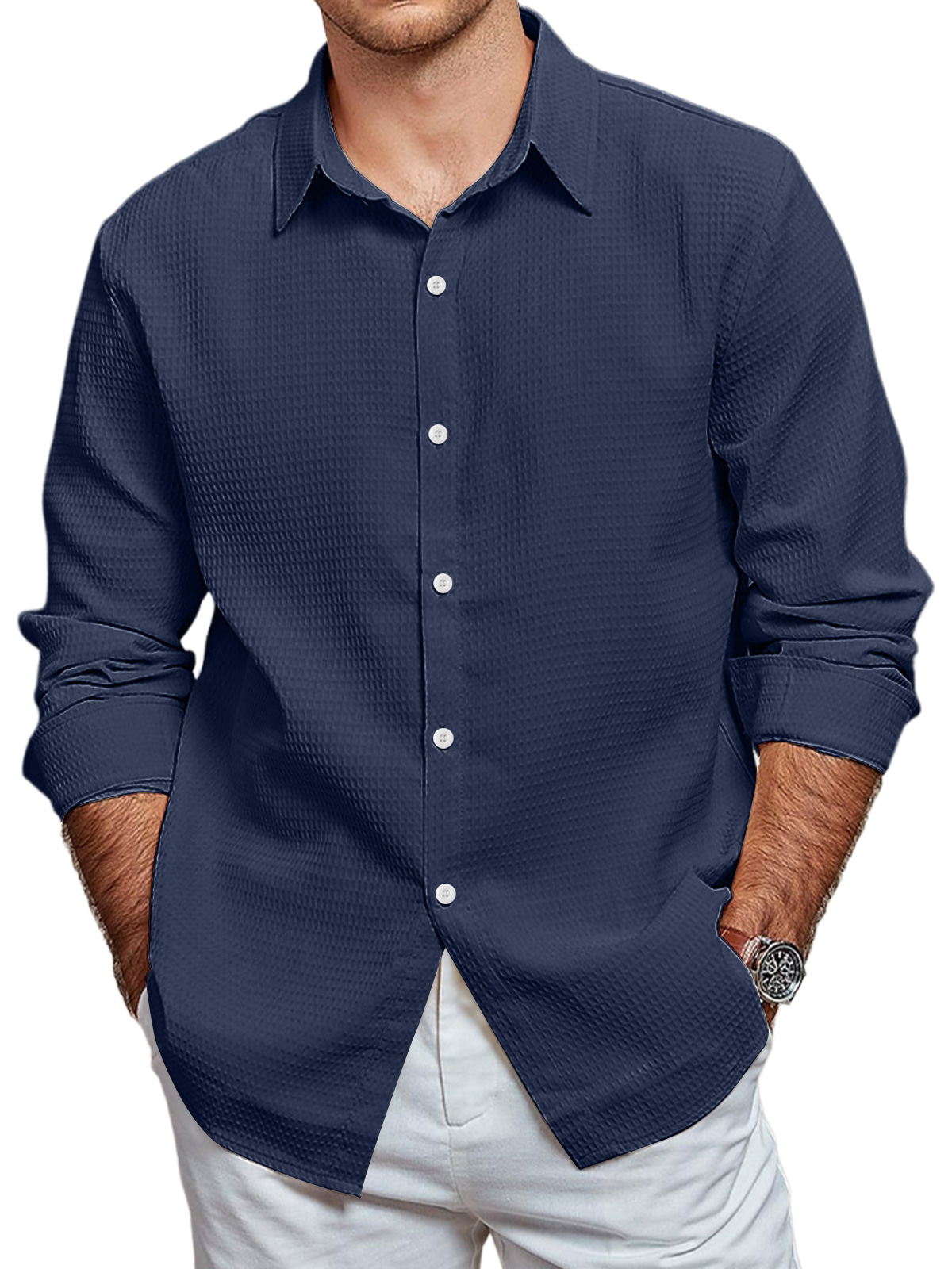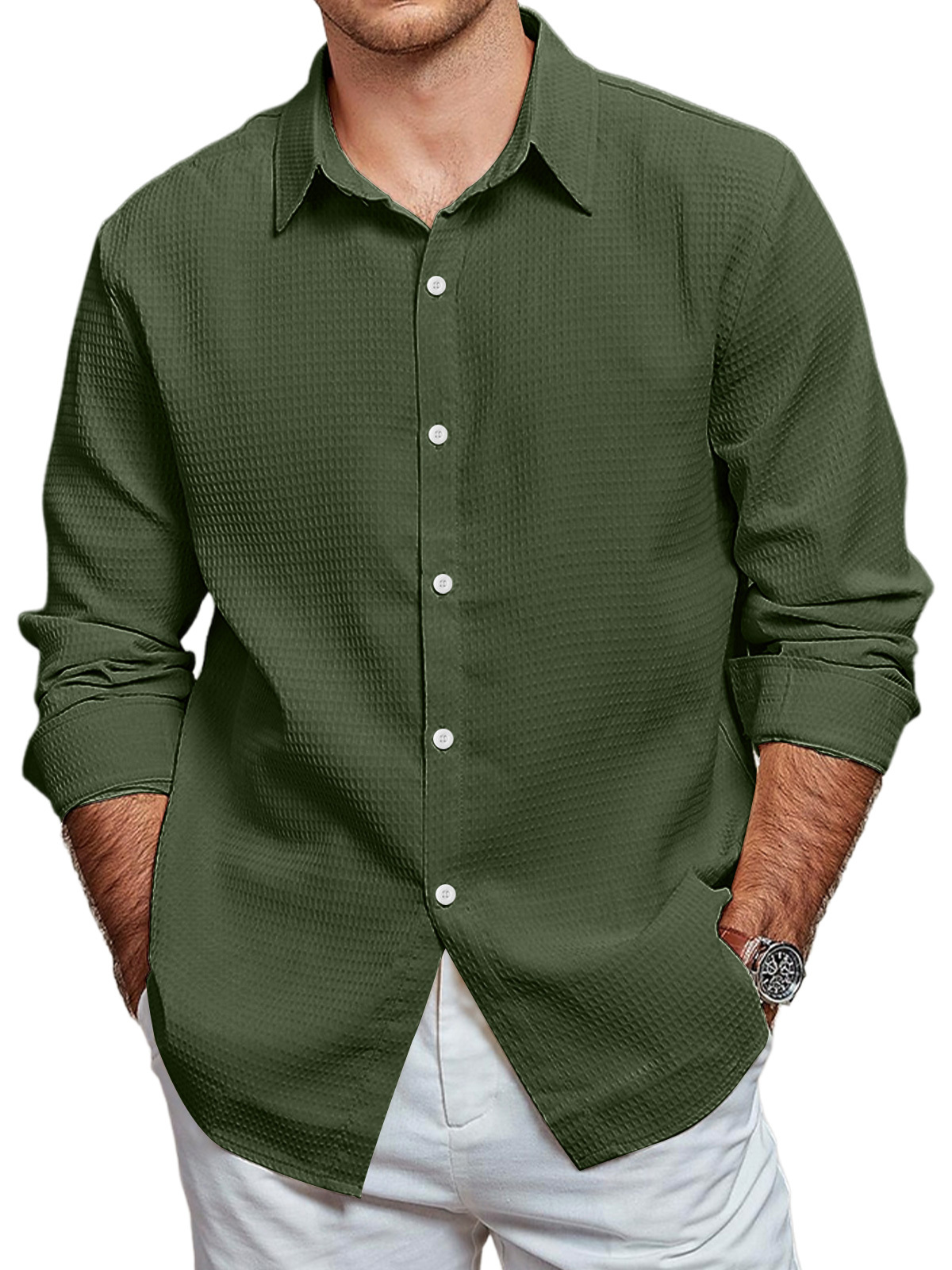 Men's Casual Waffle Solid Color Long Sleeve Shirt