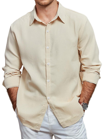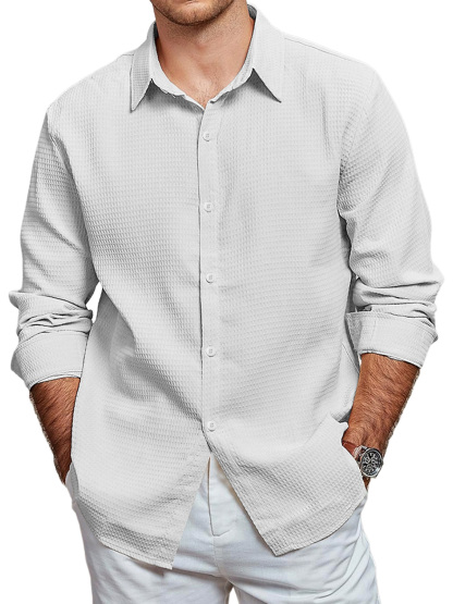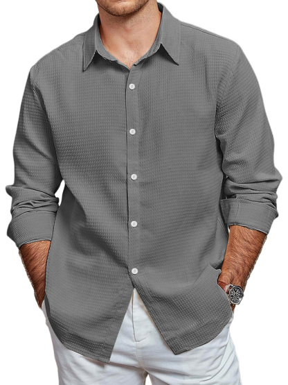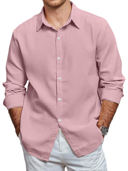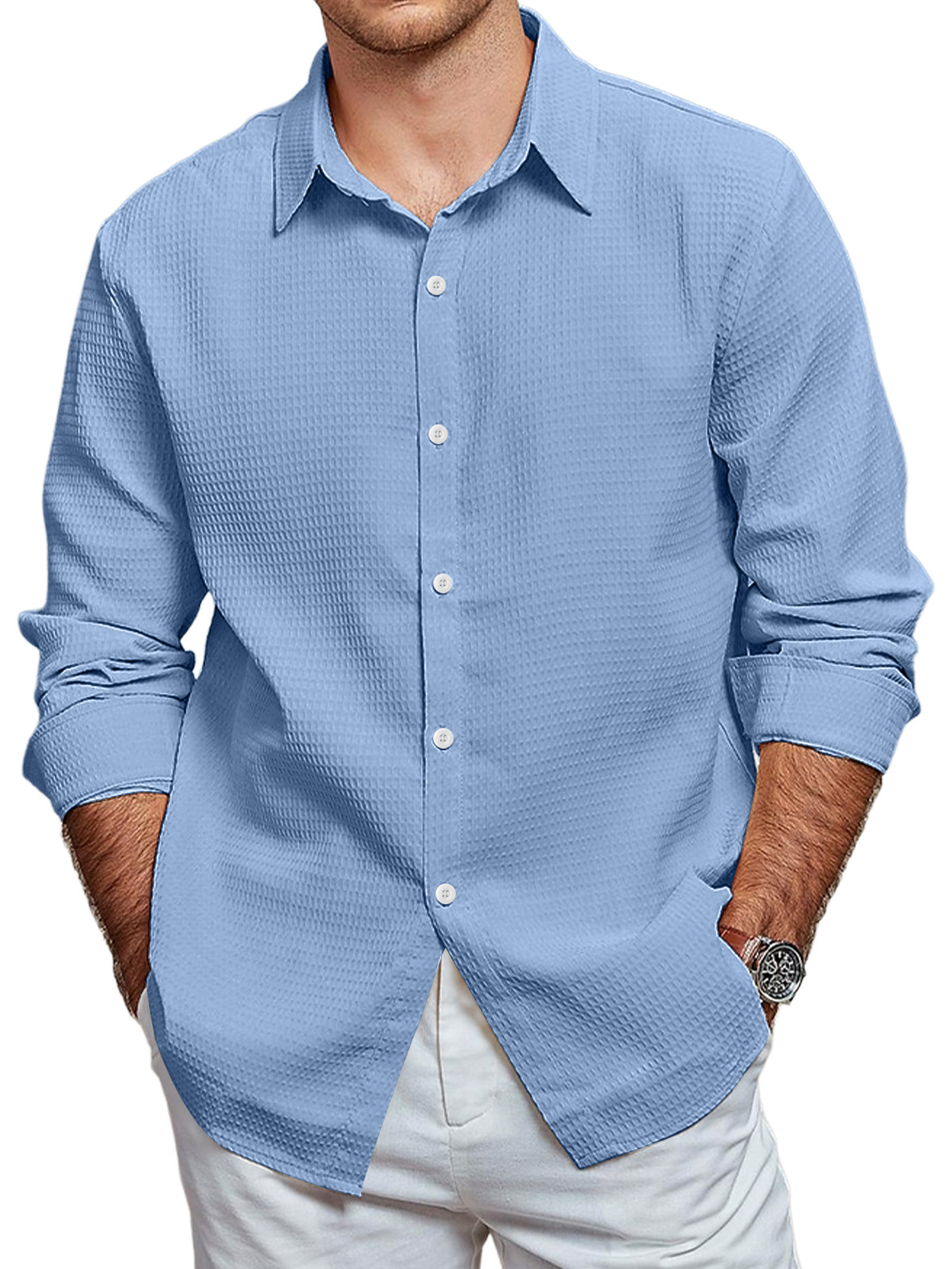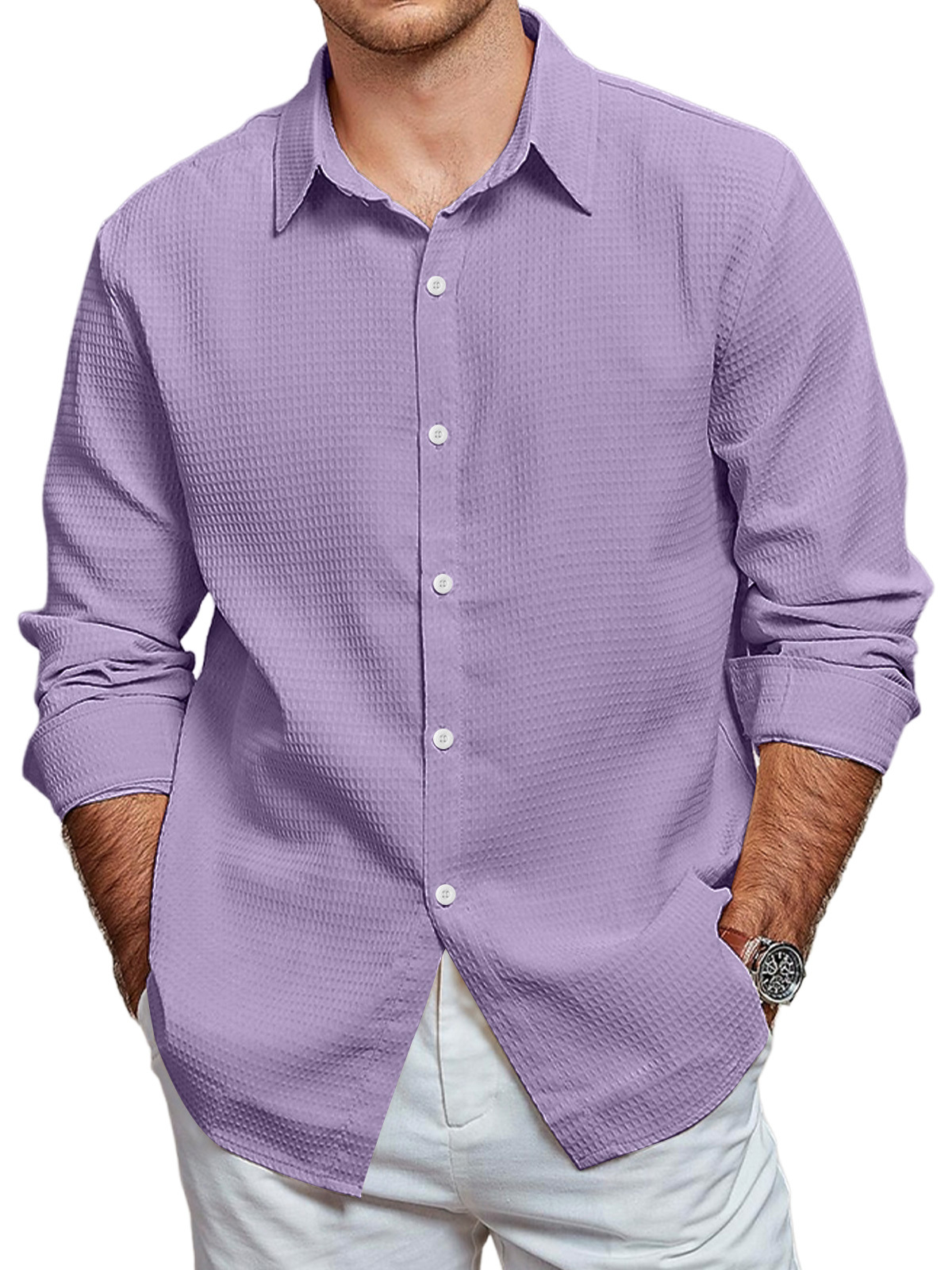 Men's Casual Waffle Solid Color Long Sleeve Shirt