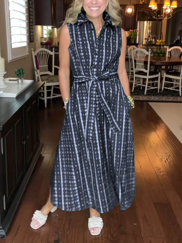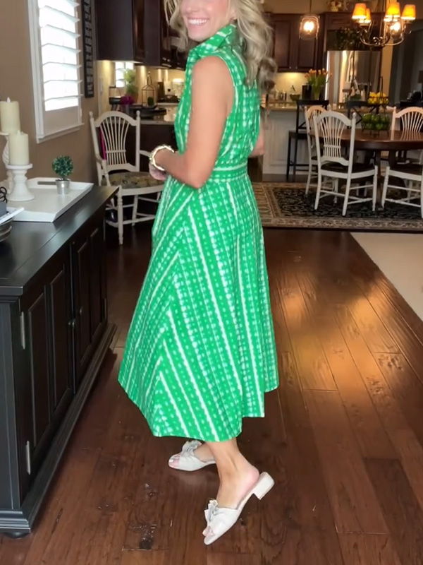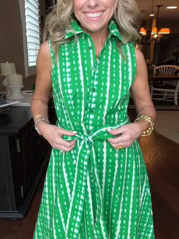 New🔥 Lapel Button Printed Waistband Dress