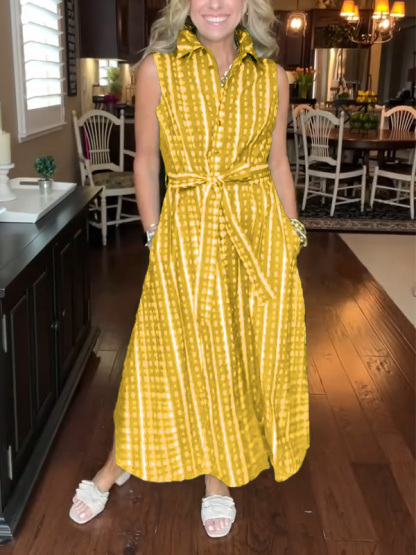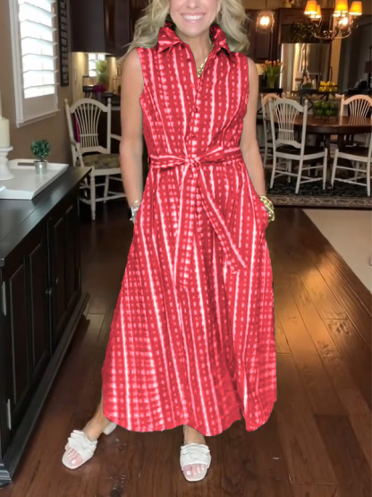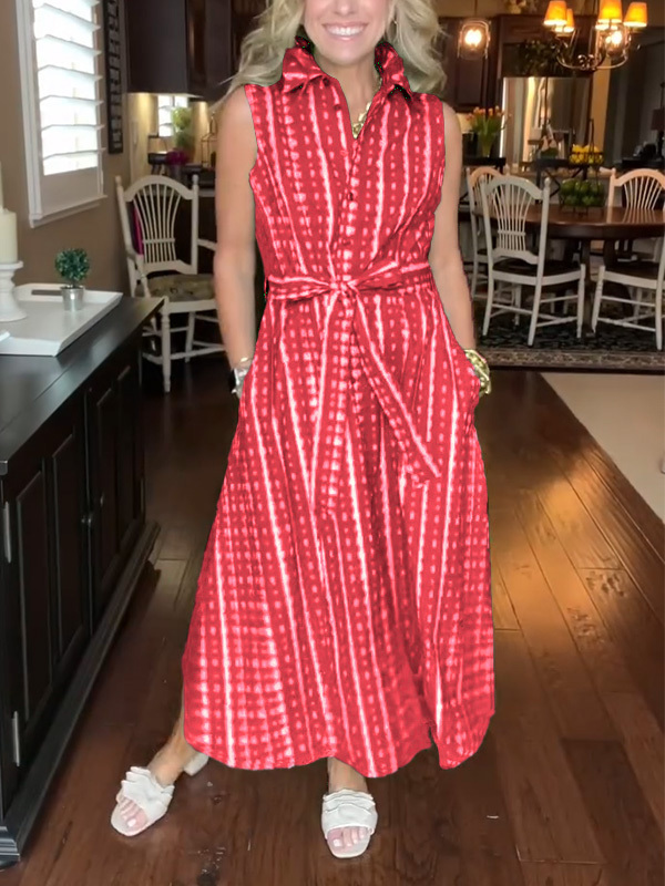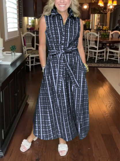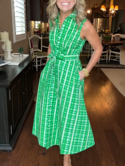 Timeless Elegance: Lapel Button Printed Waistband Dress